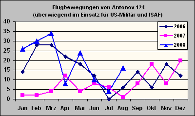 Im März 2006 wurden noch 28 Flugbewegungen (14 Starts und 14 Landungen) von Antonov 124 registriert.