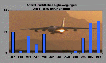 Flugbewegungen, 22:00 - 06:00 Uhr, > 67 dB(A) |