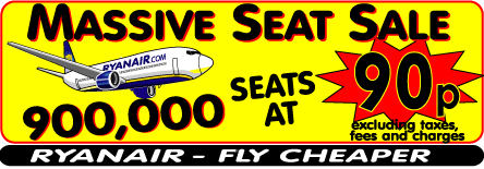 | 20.08.2004 | verschiedene Destinationen | 90 Pence | excl. | 09/04 - 01/05 | 900.000 Plätze für 90 Pence | |