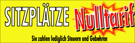 | 26.04.2004 | verschiedene Destinationen | Nulltarif | excl. | Sitzplätze Nulltarif (Sie zahlen lediglich Steuern und Gebühren) | ||