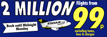 | 06.02.2005 | Alle Destinationen | ,99 pence | excl.. | 2.000.000 flights from 99 pence | ||