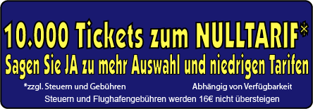 | 06.03.2005 | Alle Destinationen | Zum Nulltarif | excl.. | 10.000 Flüge zum Nulltarif | ||