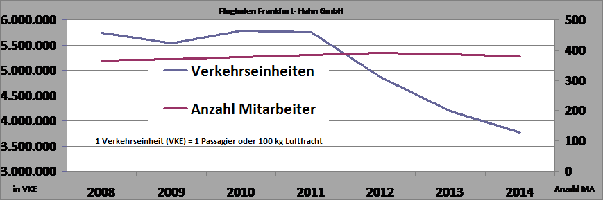 Deren Personalstärke ist immer noch so hoch wie zu Zeiten, als noch 4 Millionen Passagiere (erwartet 2015 ca. 2,45 Mio.) und 280.000to Luftfracht (erwartet 2015 ca. 80.000 to) abgefertigt wurden. |