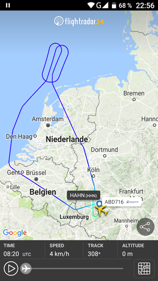 Sonntag, 18. März 2018; Erneute Sicherheits- oder Notlandung eines Jumbo-Jets am Flughafen Frankfurt-Hahn - Fuel-Dump (Ablassen von Kerosin) über der Nordsee | |