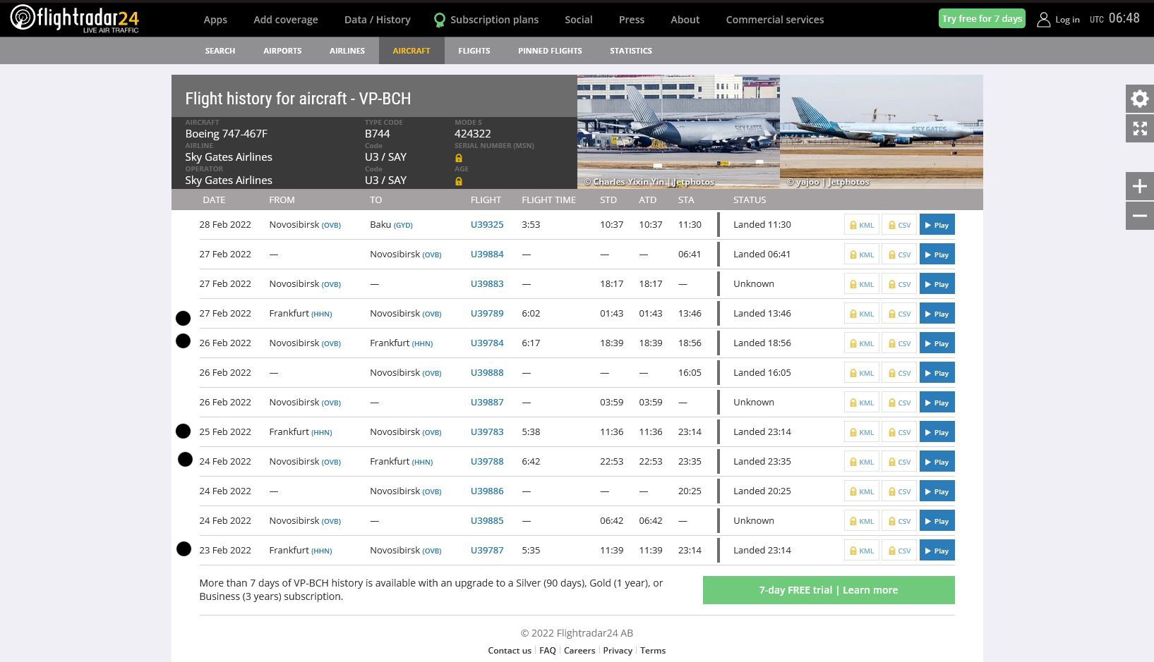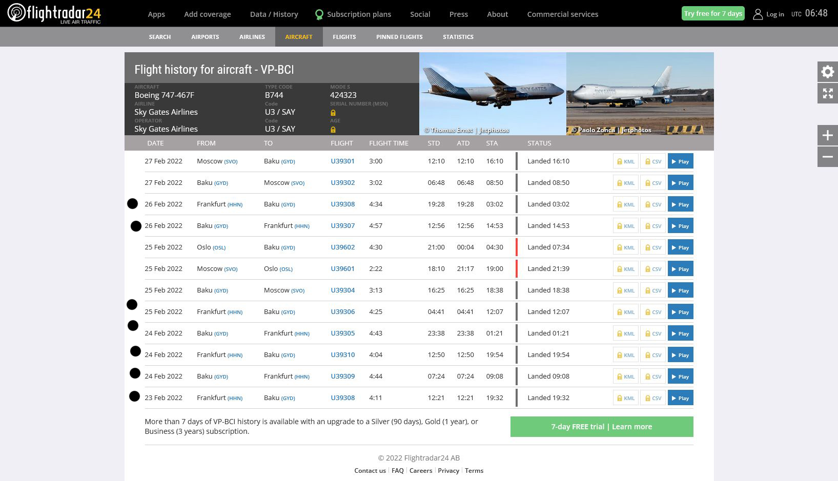 ![]() Flugplan Sky Gates Cargo: VP-BCI ![]() Flugplan Sky Gates Cargo: VP-BCH |