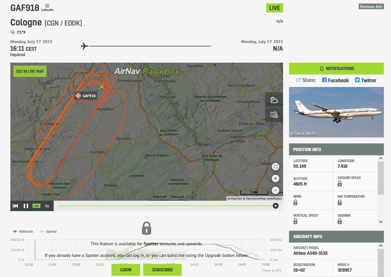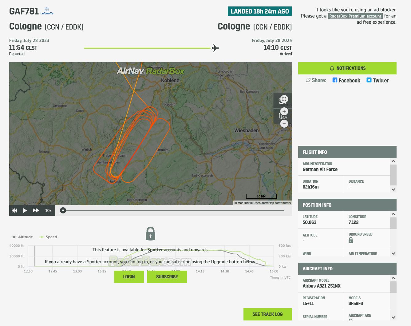 Nachdem die Flugbereitschaft BMVG bereits am Montag, den 17.07.2023 in der Zeit von ca. 16:20 - 18:00 Uhr mit einem Airbus A 340-313X mit dem taktischen Kennzeichen 16+02 und der Flugnummer GAF918 Pilotentraining betrieben hatte, war die Flugbereitschaft am Freitag, den 28.07.2023 in der Zeit von 12:15 - 13:45 Uhr schon wieder zum Pilotentraining am Hahn, dieses Mal mit einem Airbus A 321LR mit dem taktischen Kennzeichen 15+11 und der Flugnummer GAF781.