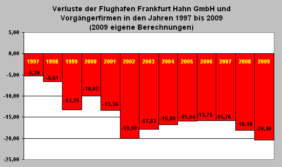 Wahrer Verlust der Flughafen Frankfurt-Hahn GmbH in 2009: 20,8 Millionen Euro