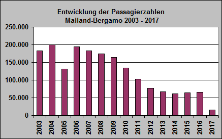 | Passagierzahlen auf der Strecke Hahn - Mailand-Bergamo -
