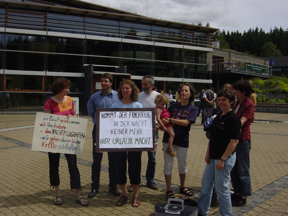 Auf Gefahren der geplanten Nachtflüge hingewiesen - Minister Hans-Artur Bauckhage traf bei seiner Tour durch Land eine Demonstranten-Gruppe - Gesprächstermin vereinbart