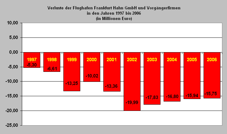 ![]() Die Analyse der Geschäftsberichte der Flughafen Frankfurt-Hahn GmbH der vergangenen Jahre incl. Angaben zum Marketing-Support finden Sie hier:Flugplatz HahnBestes Konversionsprojekt der Republik? Die Klage der Deutschen Lufthansa gegen der Hunsrückflughafen Hahn, wegen der angeblichen Zahlung EU-rechtswidriger Beihilfen an die Billigfluglinie Ryanair ist vom Landgericht Bad-Kreuznach abgewiesen worden |