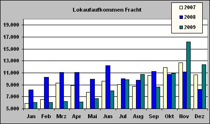 Im Gesamtjahr 2009 beträgt der Rückgang bei transportierten 12132 Tonnen bereits 6332 Tonnen gegenüber dem Vorjahr.