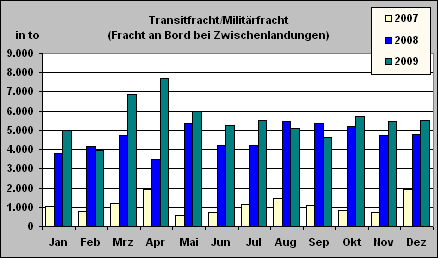 In den beiden ersten Monaten des Jahres 2009 wurden bei den ca. 200 sogenannten militärischen Zivilflügen schon fast 9000 Tonnen Militärfracht über den Flugplatz Hahn in den Irak und nach Afghanistan transportiert, was ein Plus von 999 Tonnen bedeutet. Die Steigerung dürfte insbesondere auf die mindestens 19 Transporte von schwer gepanzerten Mannschaftstransportwagen vom Typ Buffalo und Congar mit der Antonov 124 zurückzuführen sein.